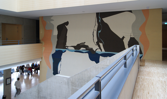 Jahr: 2009 Auftrag :die grosse Wand in der Halle des Neubaus der Magdalena Neff Schule in Ehingen bei Ulm wurde als 100m2 grosses Wandbild gestaltet. In stilisierter Form handelt es sich um einen geologischen Schnitt durch den Karst der schwäbischen Alb. Bauherrschaft: Landratsamt Alb- Donau Kreis Architektur: Drei Architekten, Stuttgart, Harald Konsek |