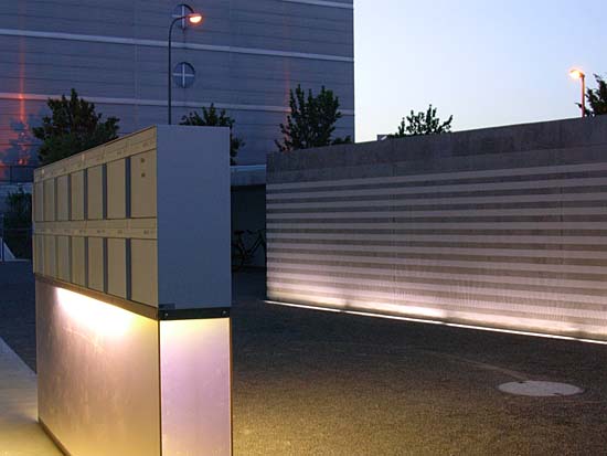 Jahr: 2003 Auftrag: Farb- und Materialkonzept Fassade, Lichtinstallation Hof Bauherrschaft: Guido Thaler AG Architekt: Adresse: Neumühlestrasse, 8406 Winterthur Publikationen: – Keine Angst vor Rot, Blau und Gelb, Adrian Mebold, Winterthurer Jahrbuch 2004 – Hochparterre, Beilage 4/2004 – Hinter buntem Fiberglas, Christiane Gabler, archithese, swiss performance 1.2005 |