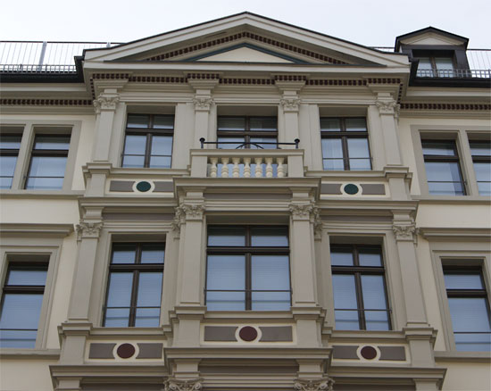 Die oberen 2 Geschosse des Hauses an der Zähringerstrasse. Alle farblichen Details wurden mit der Denkmalpflege der Stadt Zürich abgesprochen. |
