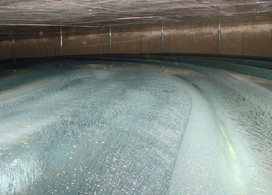 Energetisch funktioniert die Siedlung mit einem in einem grossen Kellerraum installierten Eisspeicher; dessen türkisfarbenes meterdickes Eis führte zum Farbkonzept der Tiefgarage und kann so die Mieter an das neuartige Energiekonzept erinnern | ||||
